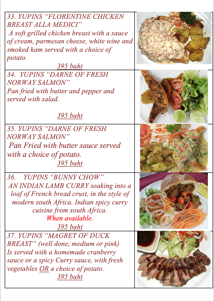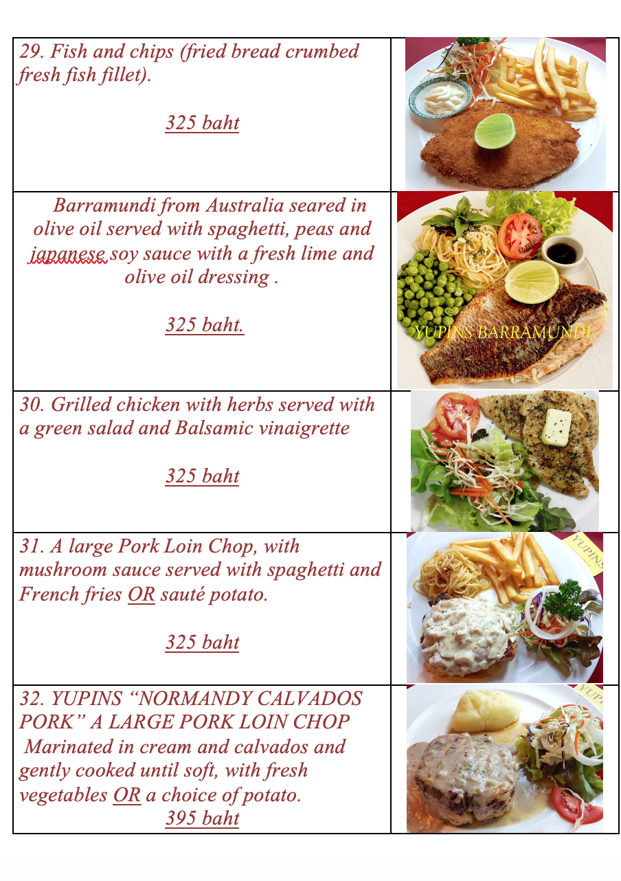 Click on the small version of the menus below, to see the full list in a new window.